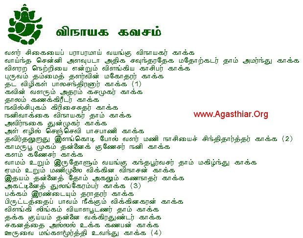 13. kaama-rupoo mugam thannaik gunEsar nani kaakka May Gunesa Vinayaka protect my face
